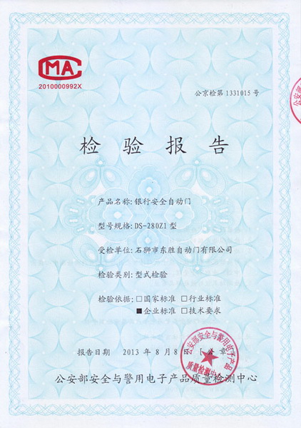 n Ministry of Public Security and Police Electronic Products Quality Inspection Center of qualified type test