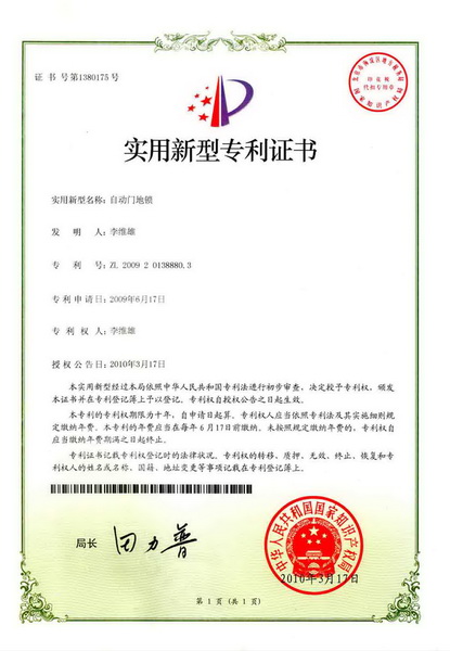Class B electric locks, magnetic lock (patented), to lock (patented) three locks to lock the door; |