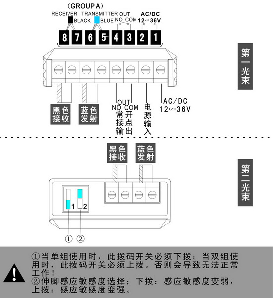 When the radio control is effective, red light, green light flashes when the beam is truncated |